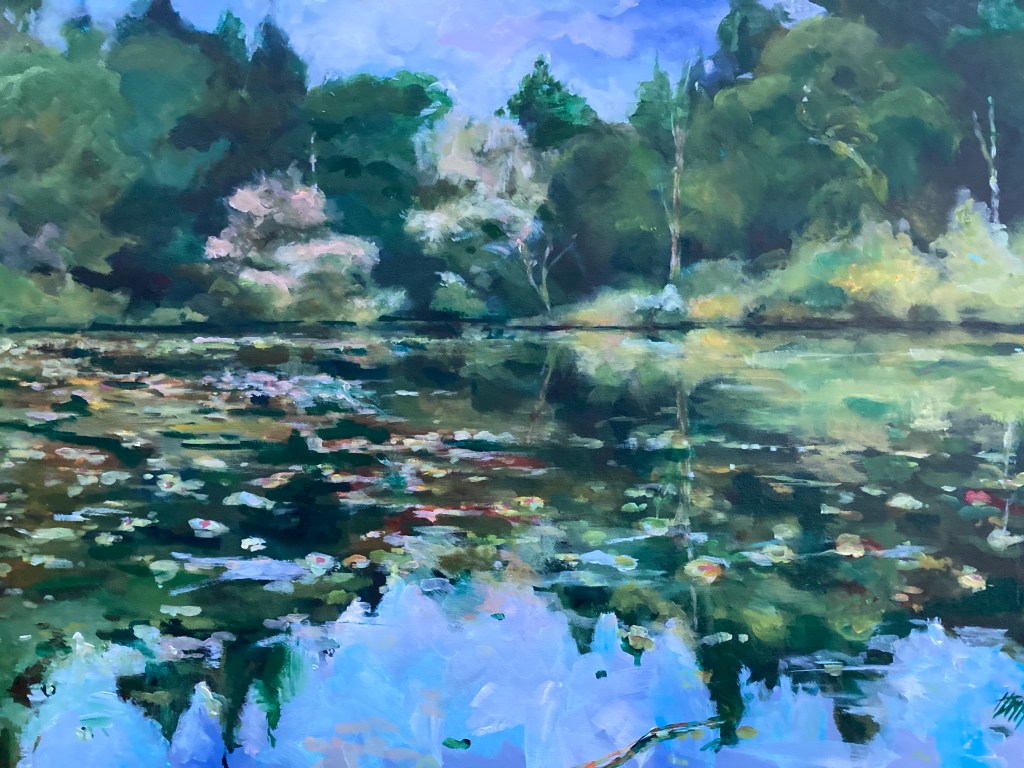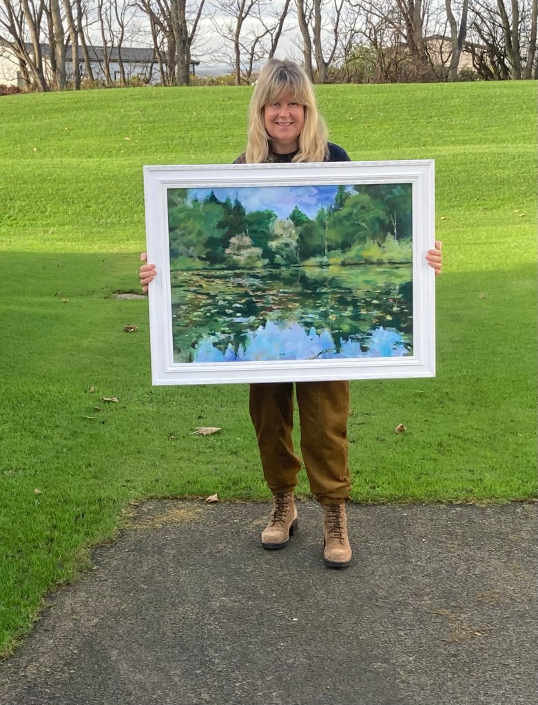 0 November 6, 2024 Written by helenmcdonaldmathie I was delighted to hand in this acrylic painting to Fika Gallery in Morpeth today. It’s a painting of Wallington Hall Waterlily lake in Northumberland. Share this: Click to share on X (Opens in new window) X Click to share on Facebook (Opens in new window) Facebook Like Loading...